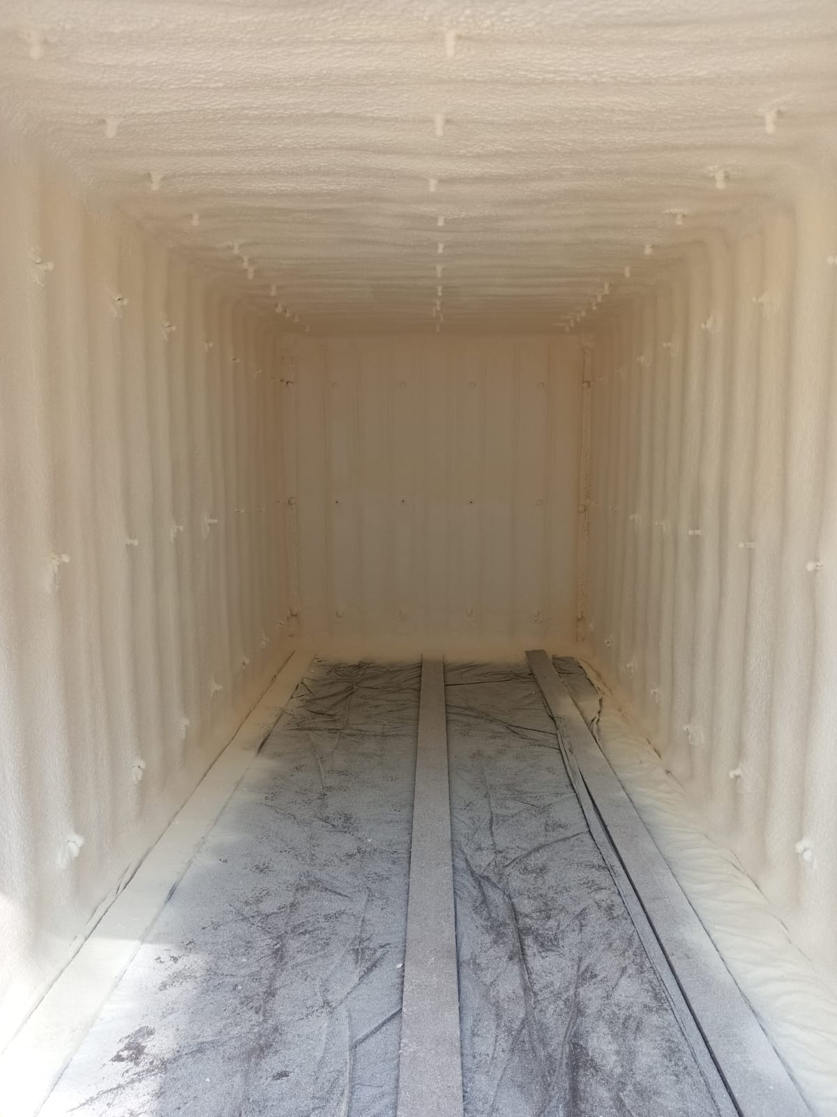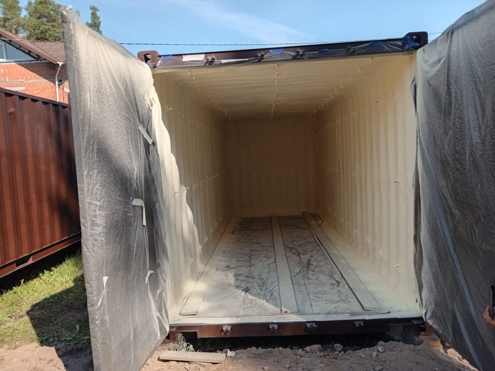 В проекте по утеплению контейнера был применён необычный, но эффективный метод монтажа теплоизоляции. Вместо стандартного подхода мастер использовал комбинированную технологию с пенополиуретаном (ППУ) и каркасным выравниванием.